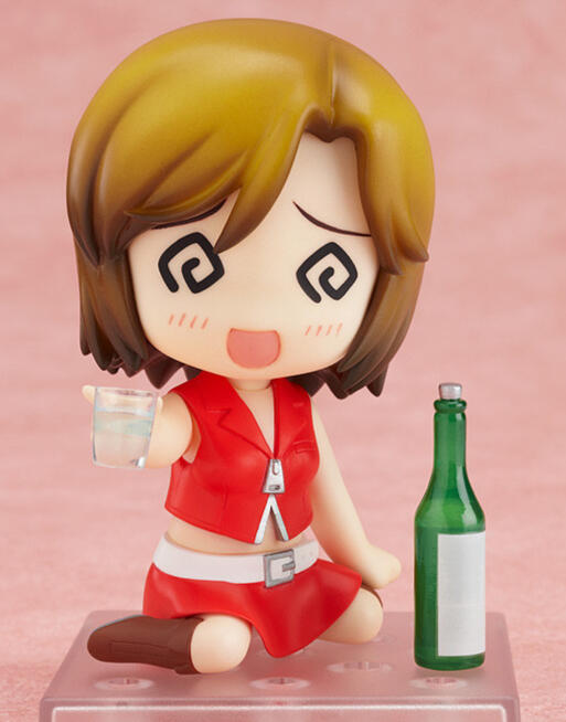 + first japanese vocaloid+ often depicted drunk by fandom+ short brown hair, brown eyes, red clothing, sometimes shown with microphone+ special item: sake, a japanese alcoholic drink